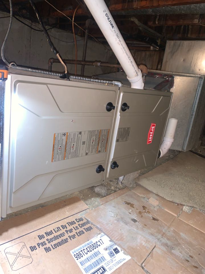 Cleaning and testing the Bryant furnace. Checking the humidifier for any leak. Testing the efficiency and safety the heating system.