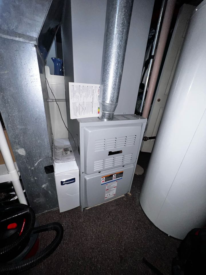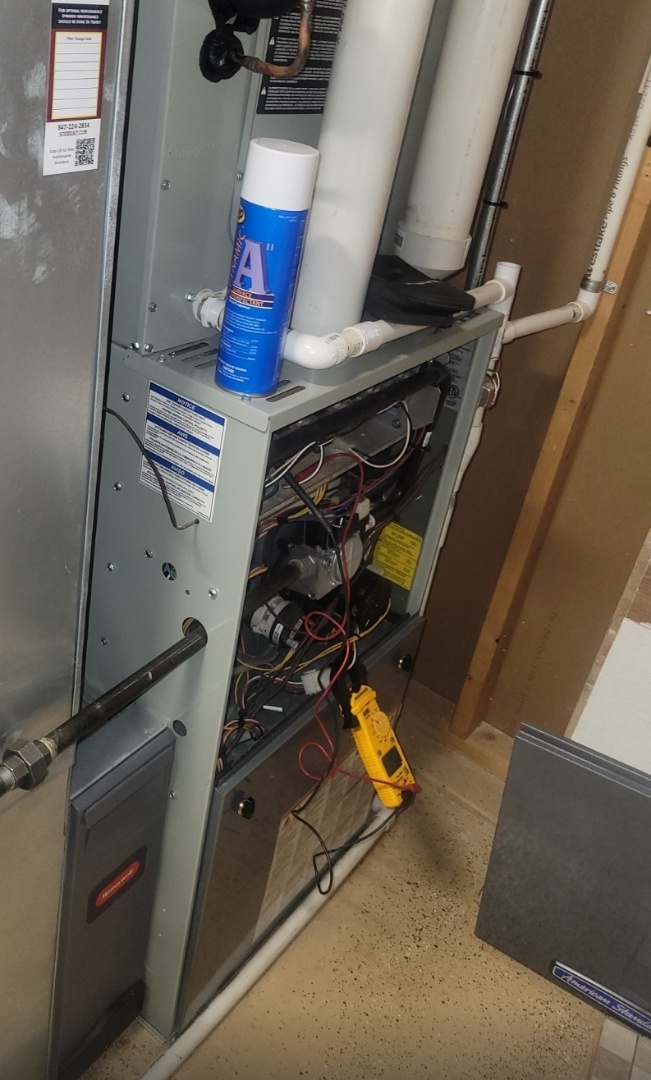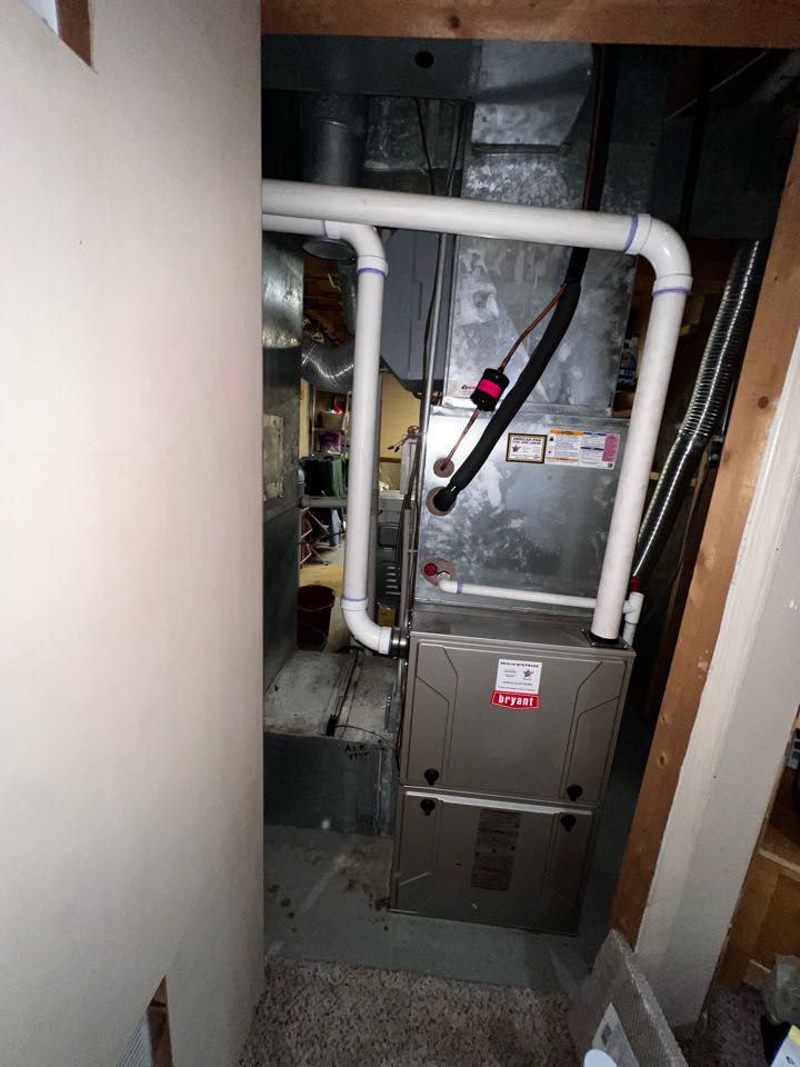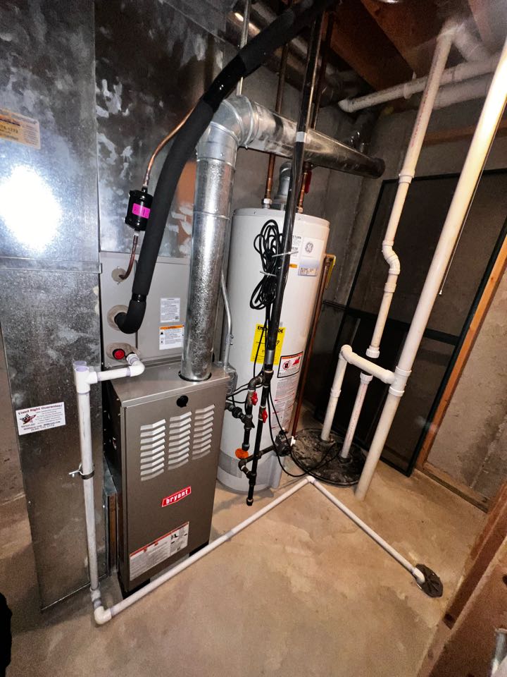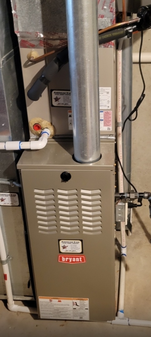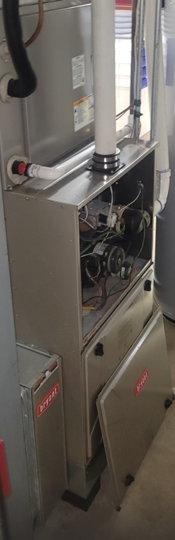 Completing the yearly maintenance and cleaning on the Bryant high efficiency furnace. Testing its saftey and operation. Changing the humidifier pad and checking all the drains. Changing the air filter. Also inspecting the water heater.