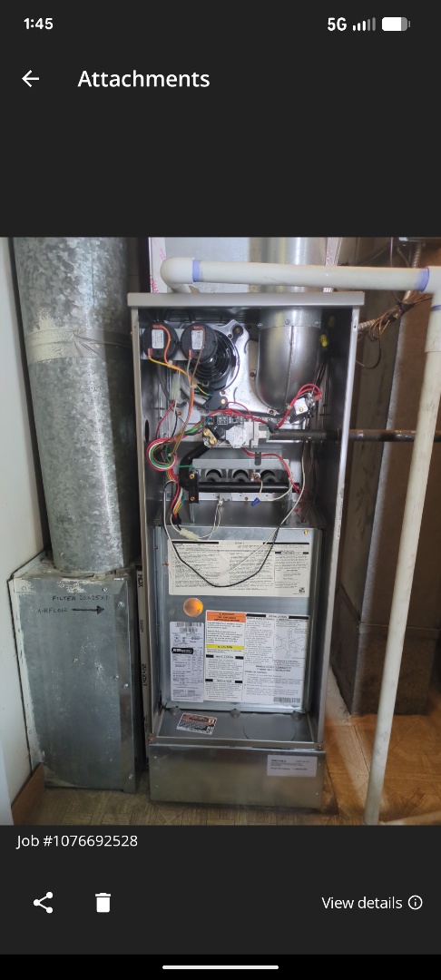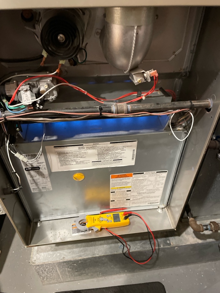 Performing annual furnace clean & check. Replacing air filter. Taking heat rise.