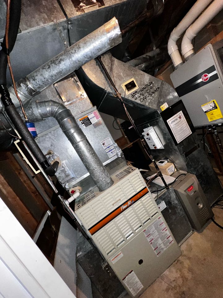 Performing annual furnace clean & check. Replacing humidifier pad. Taking heat rise.