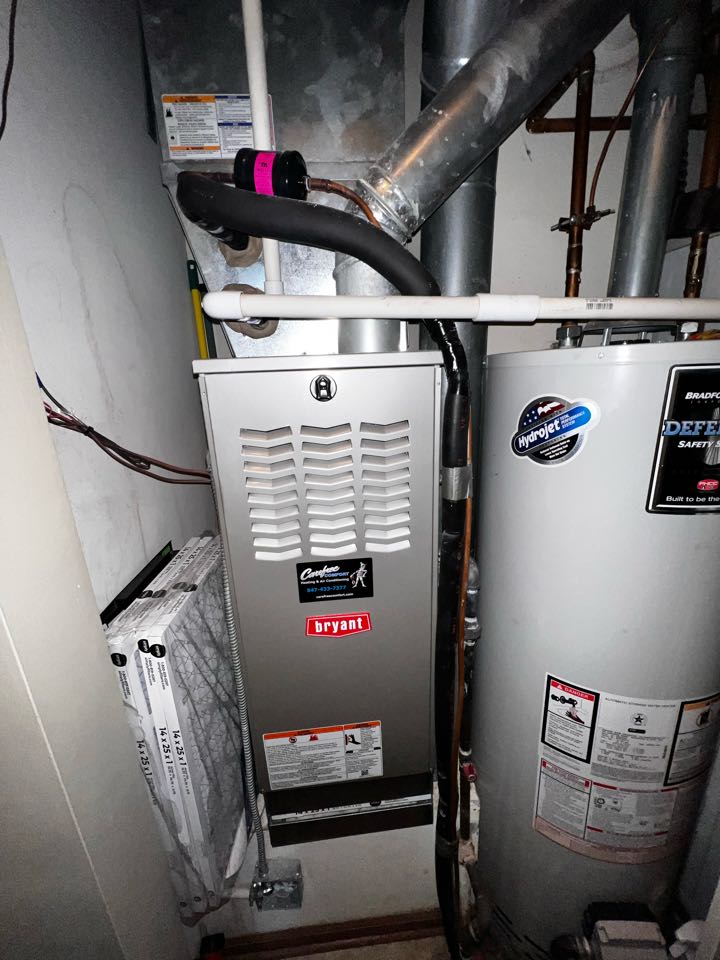 Performing annual furnace clean & check. Replacing air filter. Taking combustion analysis.