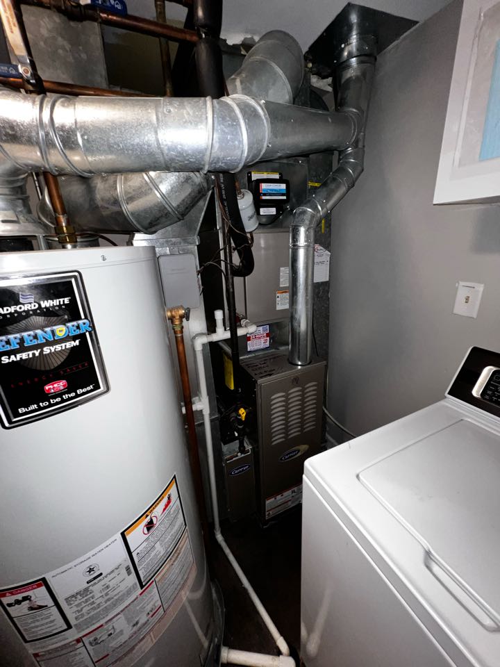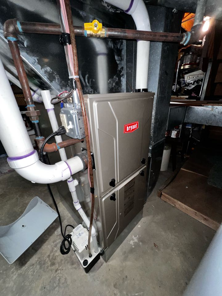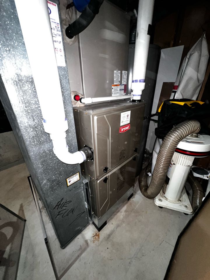 Performing annual furnace clean & check on Bryant unit. Cleaning out drain trap. Taking heat rise & amp draw.