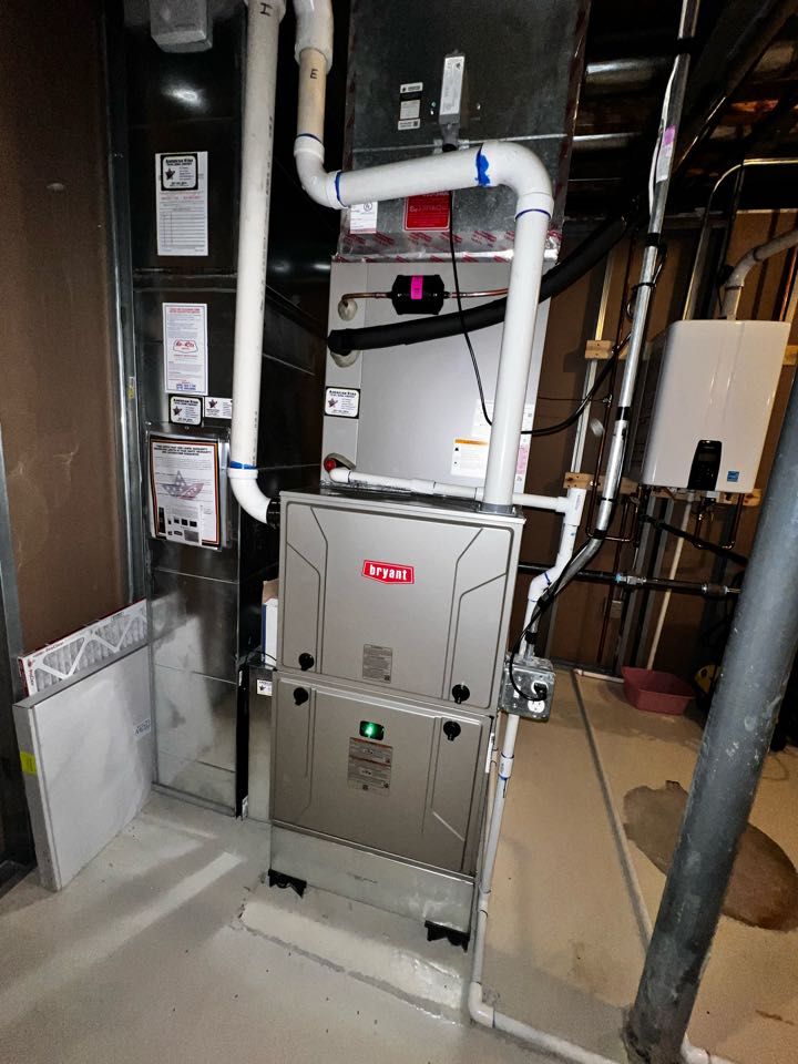 Performing the annual recommended preventive maintenance and cleaning of the high efficiency Bryant gas furnace. Testing its operation and saftey to help ensure a breakdown free heating season. Changing humidifier pad and sanitizing the area. Also, flushing the water to help add longevity to the tanks life.