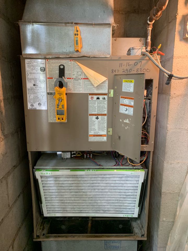 Elk Grove Village, IL - Performing annual furnace check. Replacing air filter. Taking heat rise. Checking flame rectification.