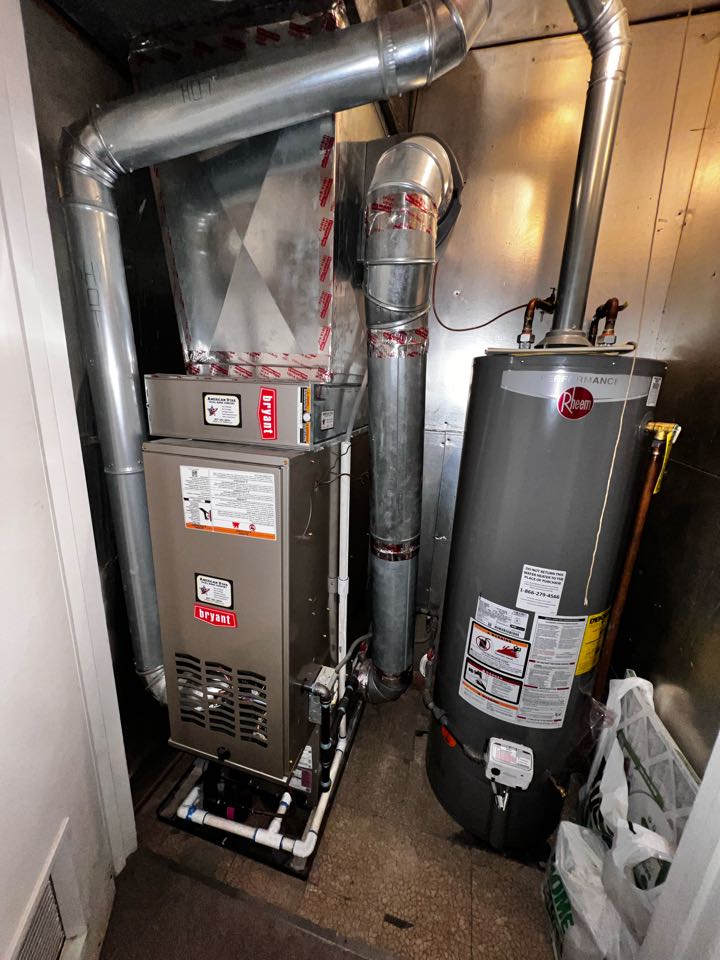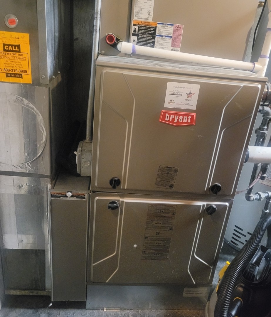 Completing the yearly cleaning and testing of the Bryant gas furnace. Changing the humidifier pad and testing for leaks. Also, installing an electronic air cleaner for improved air quality and dust control.