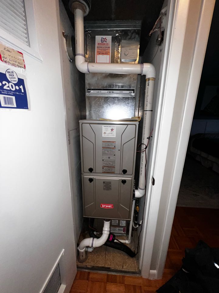 Elk Grove Village, IL - Performing annual furnace clean & check on Bryant unit. Cleaning out drain trap. Taking heat rise.