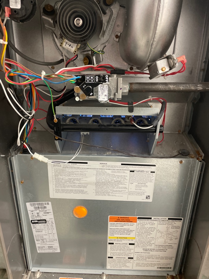 Completing a scheduled tune up on the gas furnace. Checking the safety of the equipment and testing the operation. Helping ensure everything is running according to manufacturer specifications and to help have a breakdown free heating season.