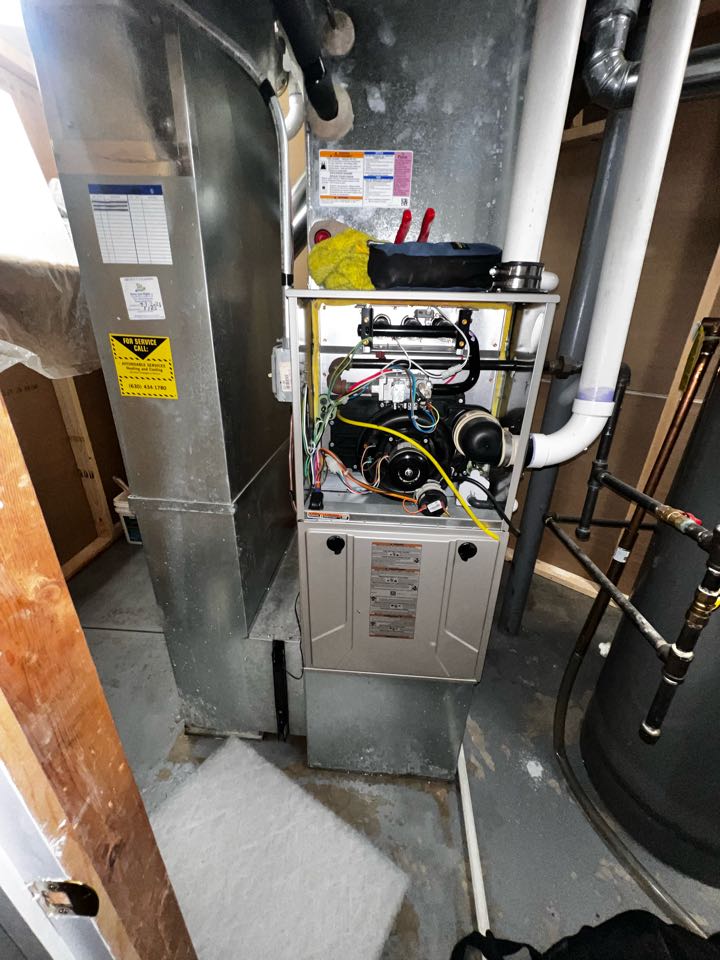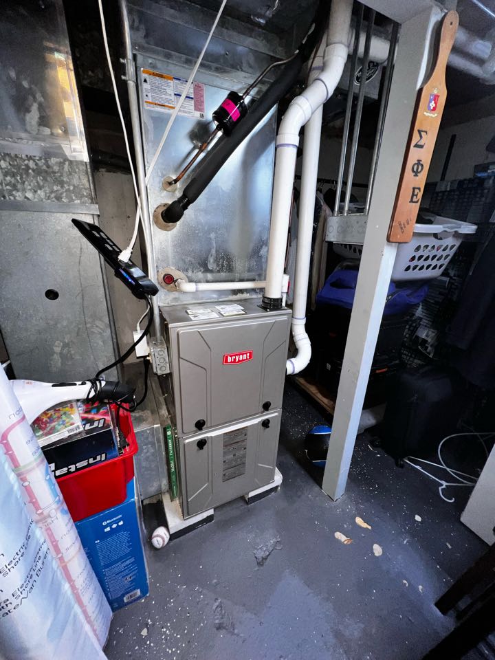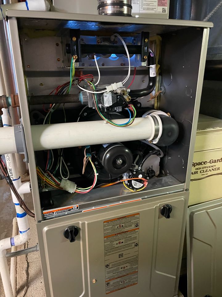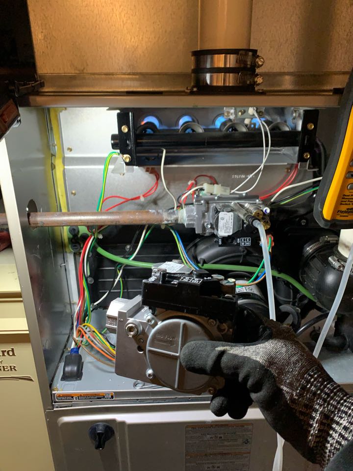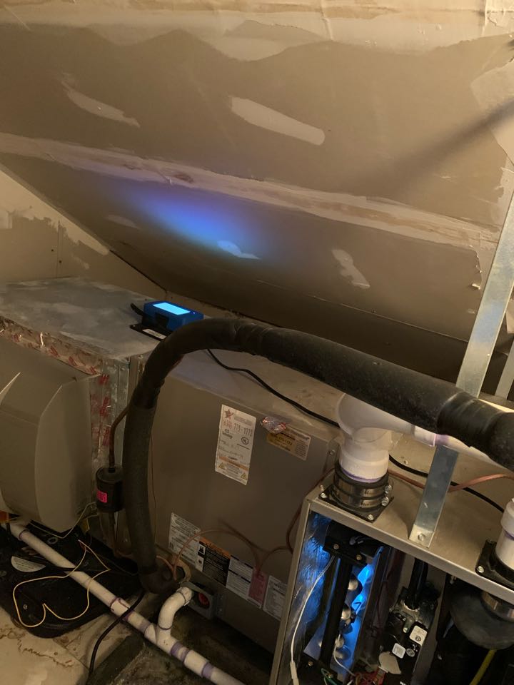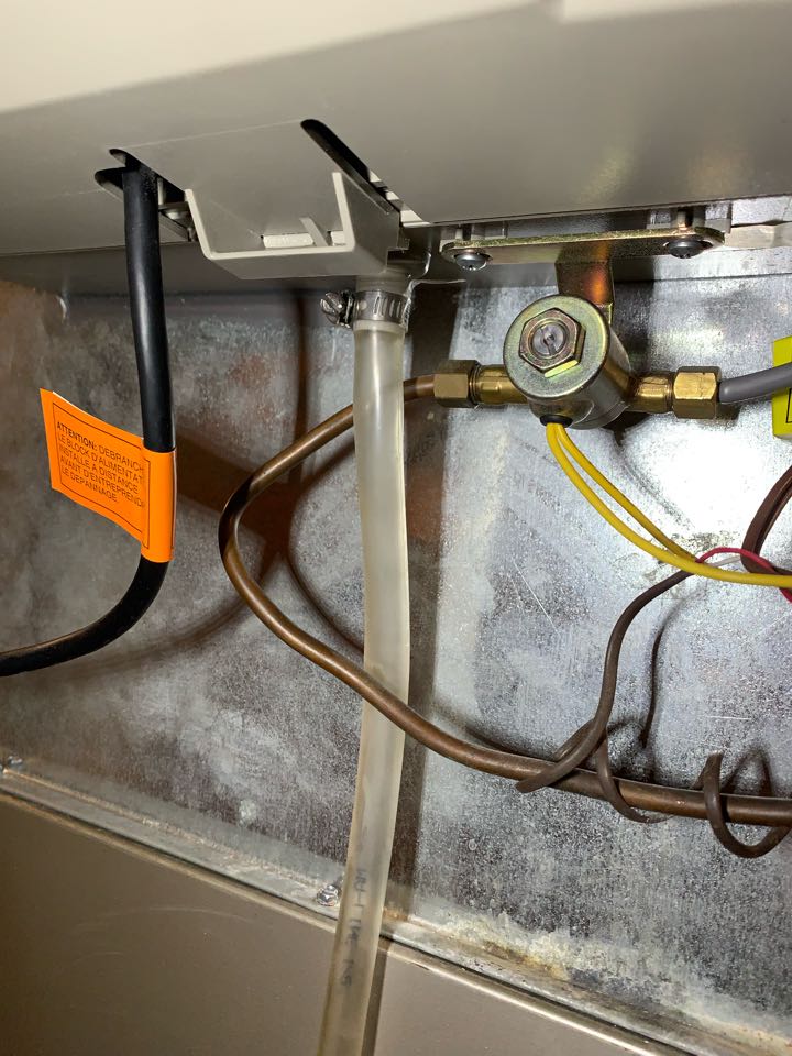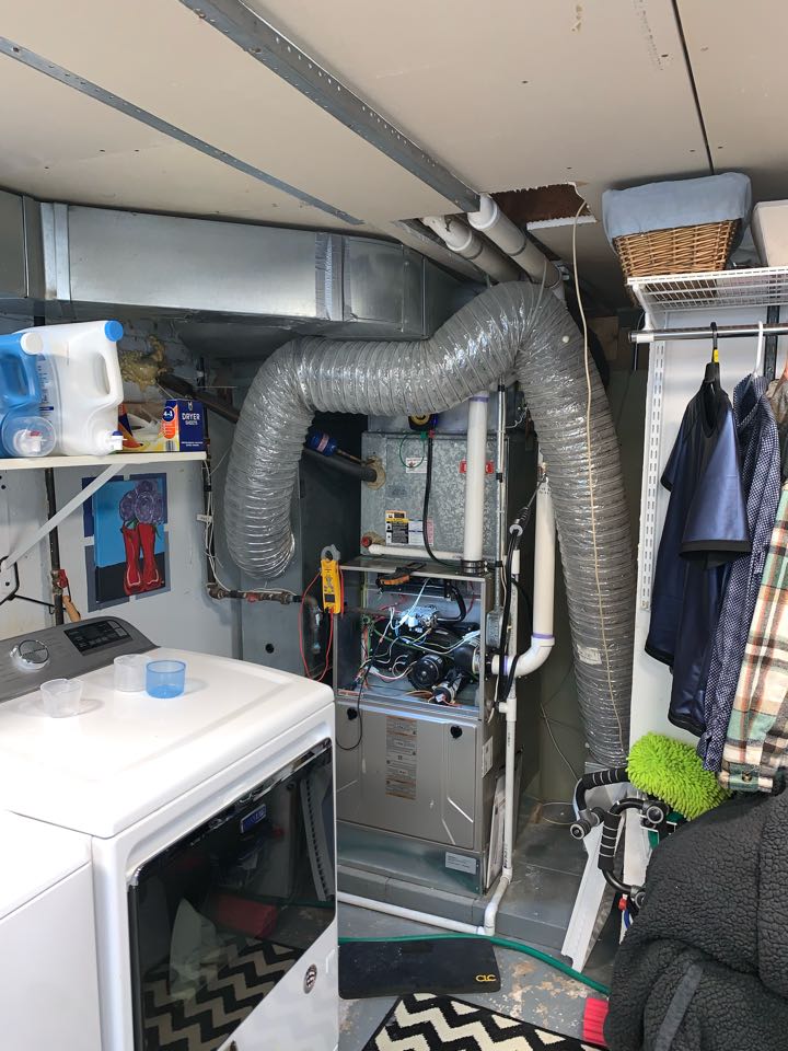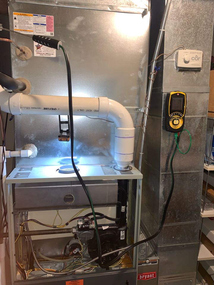 Performing annual furnace maintenance check. Cleaning out drain trap. taking heat rise.