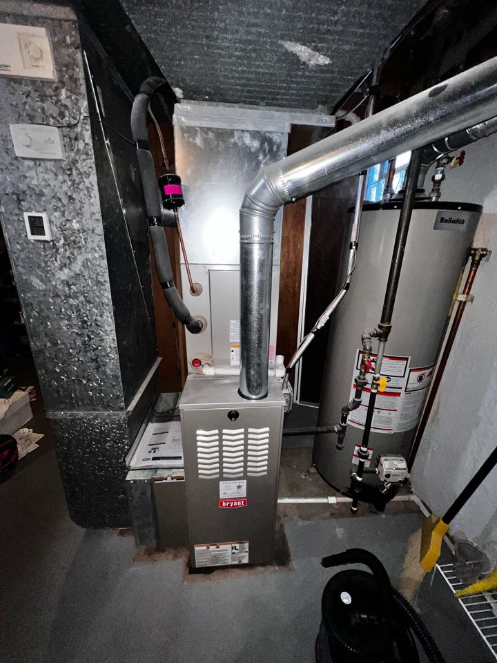 Performing annual furnace clean & check on Bryant unit. Checking flame rectification. Taking heat rise.