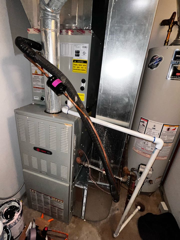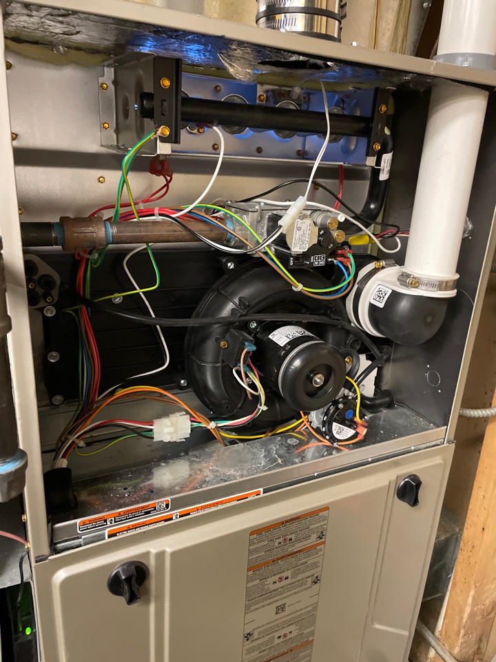 performing maintenance and doing a commissioning on a brand new high efficiency Amana furnace