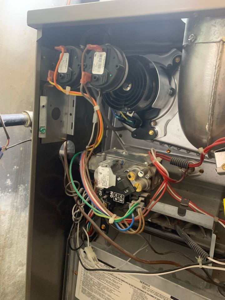 Performing annual furnace clean & check. Checking flame rectification. Taking heat rise.