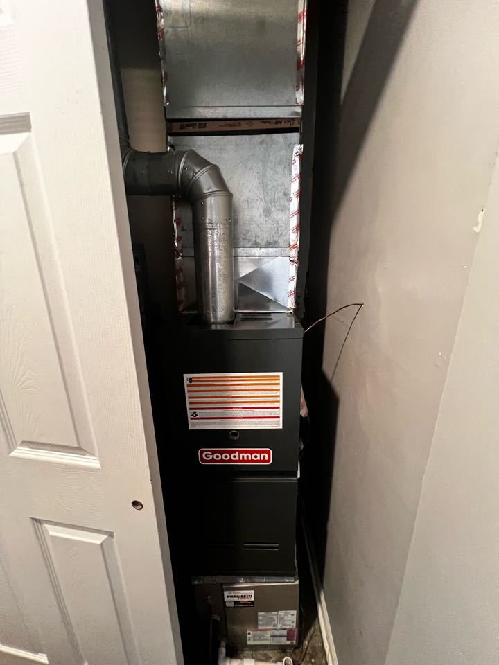 Rolling Meadows, IL - Performing annual furnace maintenance check on Goodman unit. Taking amp draw & heat rise. Checking flame rectification.