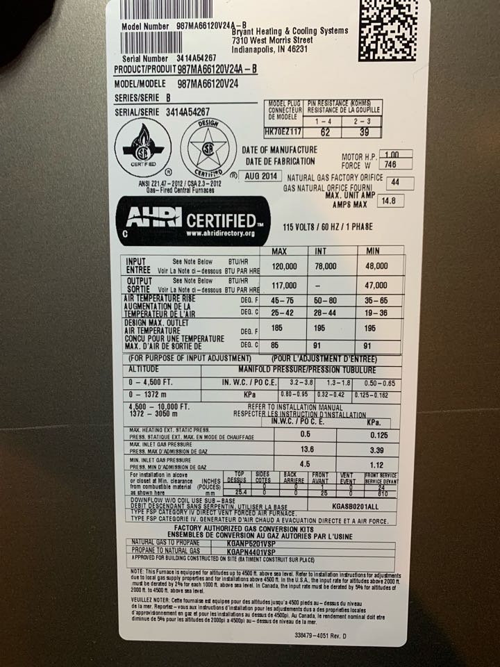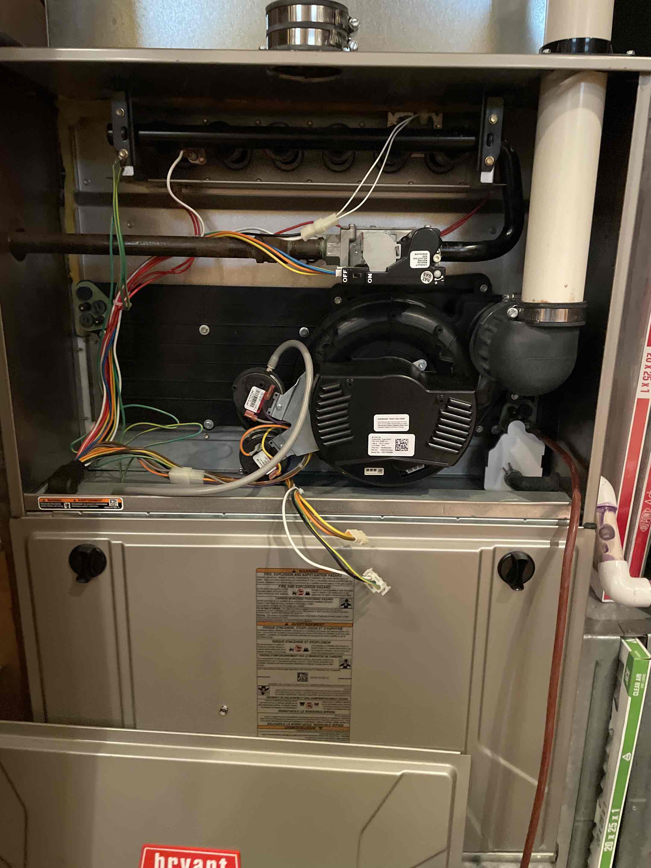 Performing yearly clean & check on Bryant furnace. Taking heat rise. Checking amp draw.