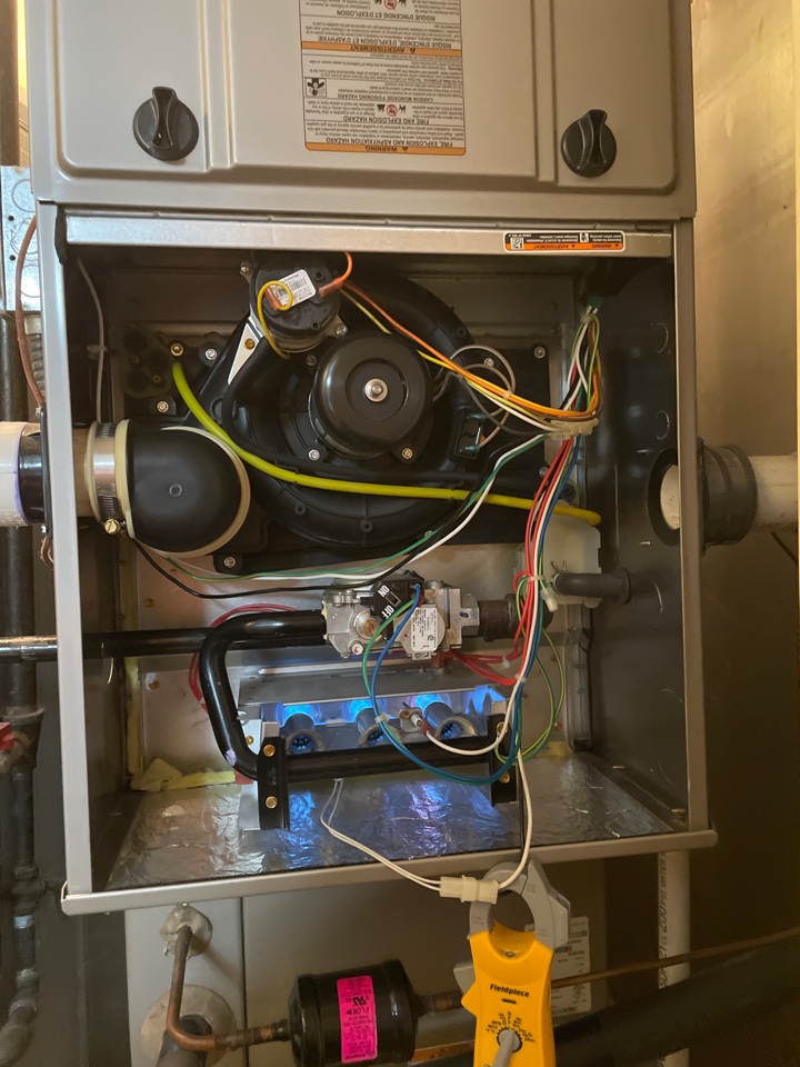Performing the yearly maintenance and cleaning on the trane furnace and humidifier. Testing the operation and efficiency of the equipment. Changing the humidifier pad and air filter. Then explaining the dampers system in the home to maximize air flow and comfort to areas of the home.