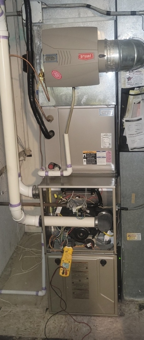 Tuning up and cleaning the Bryant furnace. Testing its operation and saftey to help ensure a breakdown free heating season. Changingbthe humidifier pad and checking for proper draining.