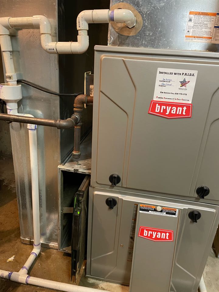 Performing a cleaning and testing of the Bryant high efficiency furnace. Testing the operation and saftey of the unit to help ensure a breakdown free heating season.