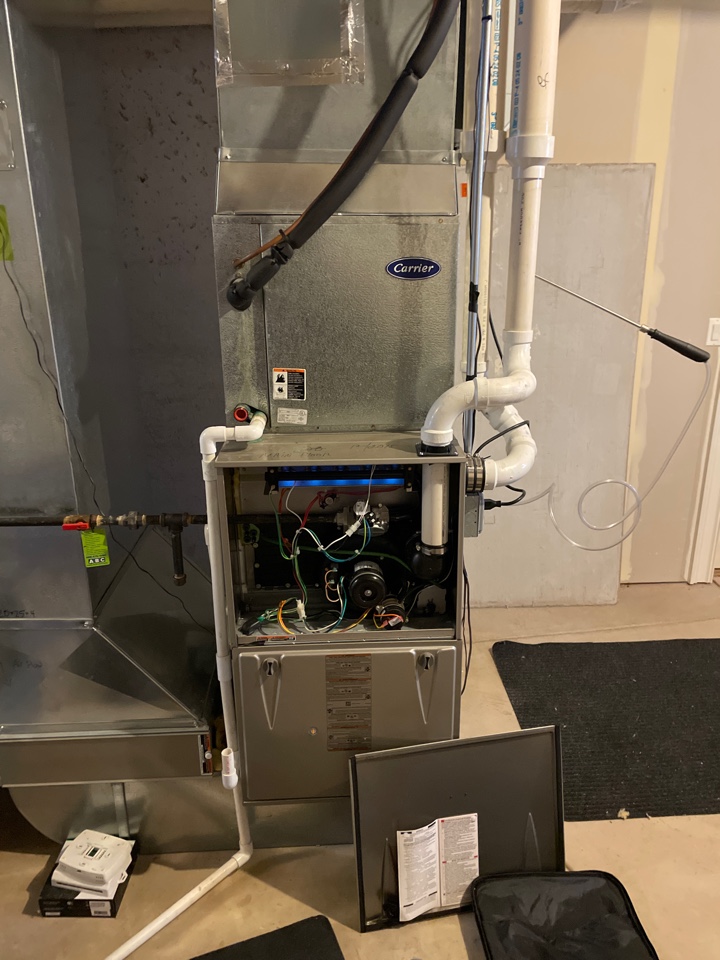Cleaning and testing the Carrier gas furnace. Changing the humidifier pad and sanitizing the area. Testing the efficiency and safety of the equipment with a no breakdown guarantee.