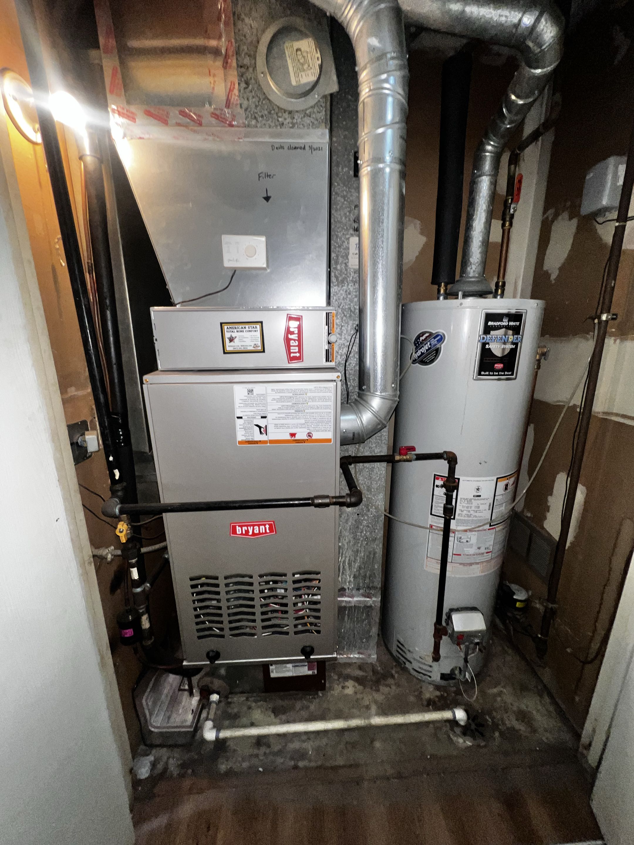 Performing the tune up and testing of the Bryant furnace. Changing the air filter and humidifier pad. Testing the units operation and efficiency to help have a breakdown free heating season.