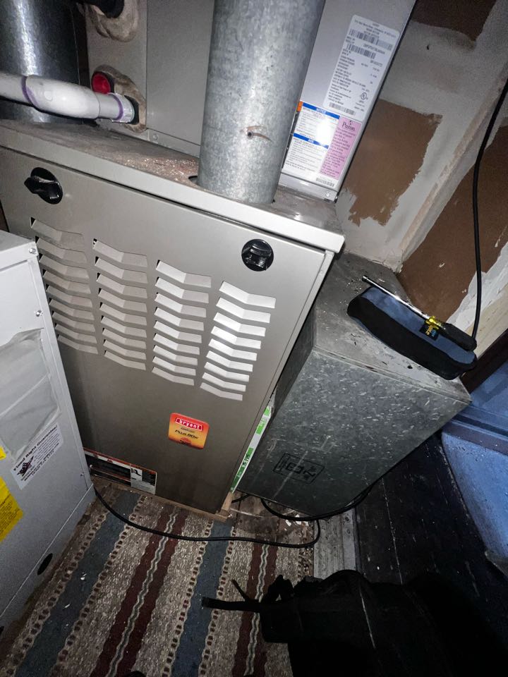 Performing annual furnace maintenance check. Replacing air filter. Taking heat rise.