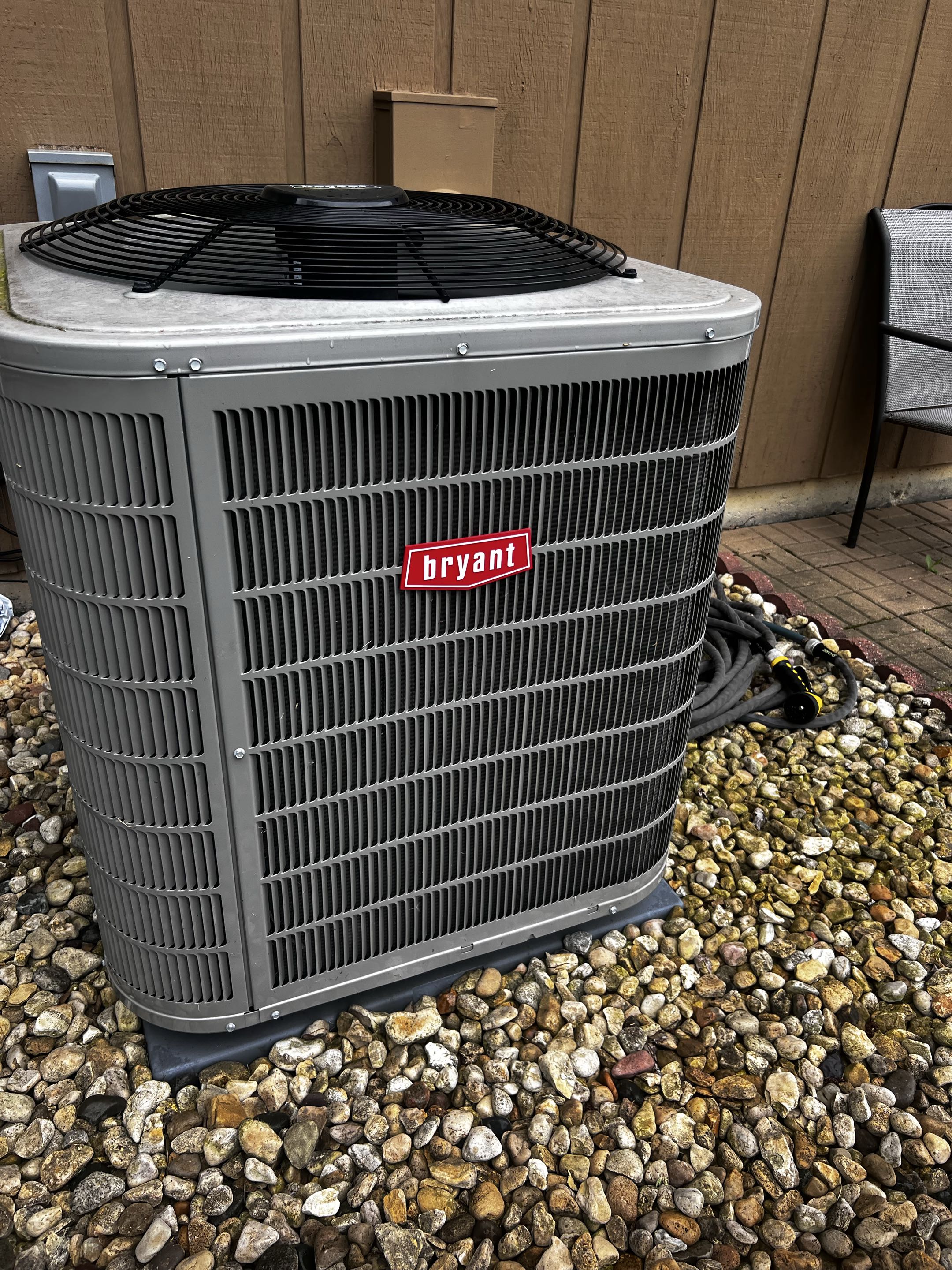 Performing annual AC check on Bryant unit. Inspecting air filter. Taking temp drop & amp draw.